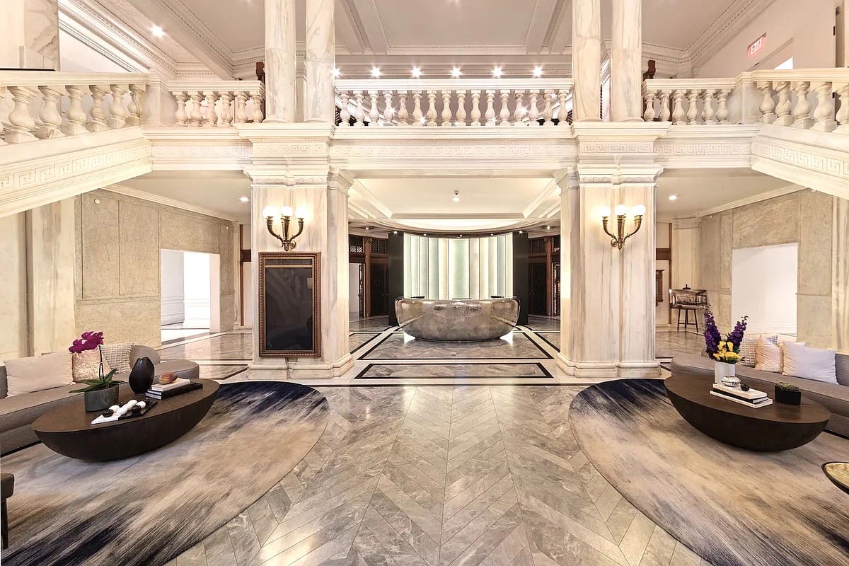 Custom Metal & Glass work (including installations) in this massive conversion of a pre-war building into luxury condos in a NYC Landmarks Commission property. Includes; extremely custom - hammered SS Lobby Reception Desk, custom replication of massive Pre-War Bronze Lobby Gates, Backlit & sandblast-etched custom glass panels in wood frames behind (3) Entry Desk locations, Children's Play Room, Amenities areas, Wine Racks, Swimming Pool, Mail Room, custom conical-shaped metal Vanities & Mirrors, (63) miles of custom synthetic - replicated plaster mouldings throughout the building. References: Mr. Bill Harvey, EVP, EL-AD Group LTD (646) 306-0707 Mr. Alex Olsen, COO, EL-AD Group, LTD (212) 213-8833