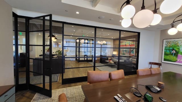 High-End Custom Steel Office Fronts & Conference Room wall systems with massive doors. Entire assemblies glazed with tempered glass in multiple mullion arrays. Project manufactured in Shanghai facility and Shipped to Port of Los Angeles. Installation with composite crew of N.Y. (ALBCO) and L.A. local labor forces (DLC). References: Mr. Mark Whelan (213) 800-2187, Mr. Raul Ramirez (213) 944-7434 of DPM. Installation - Mr. Patrick O'Connell (562) 666-7174 DLC Corp. & Mr. Erick Prifti ALBCO Tech (347) 337-4619