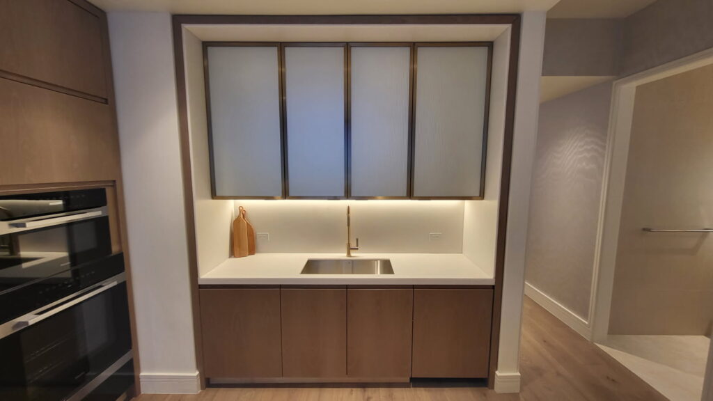 This new luxury tower at 74th Street in Manhattan was developed by EL-Ad. High-End finishes, including High-End custom Kitchens & Vanities with custom "Champagne Plated" SS doors with ribbed / frosted / reflective Glass Lites, Stone coordination, Architectural Metal & Glass work, Amenities areas, Custom Woodwork, overseas veneer supply and custom hardware. All Woodwork and Architectural Metal & Glass work was sourced from the East Coast and our manufacturing facilities in Shanghai. References: Mr. Bill Harvey, EVP, EL-AD Group LTD (646) 306-0707