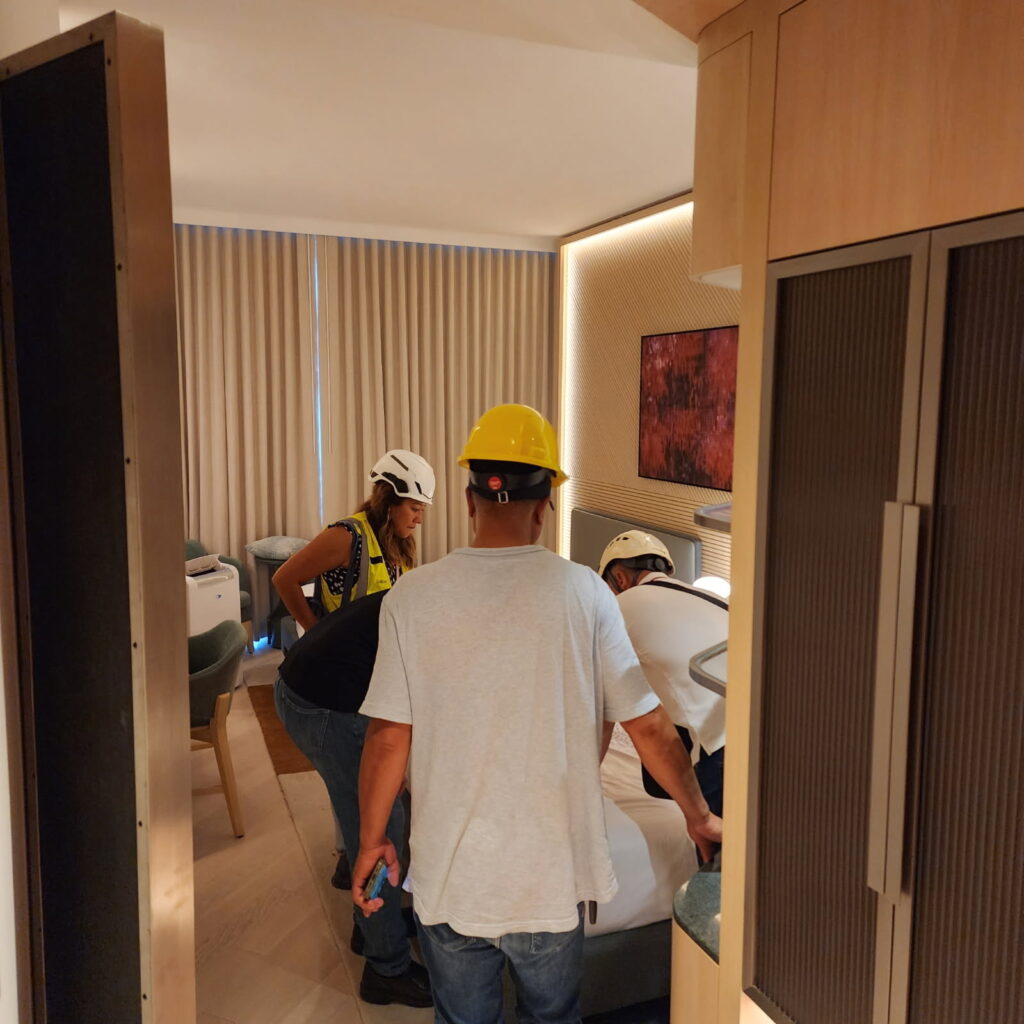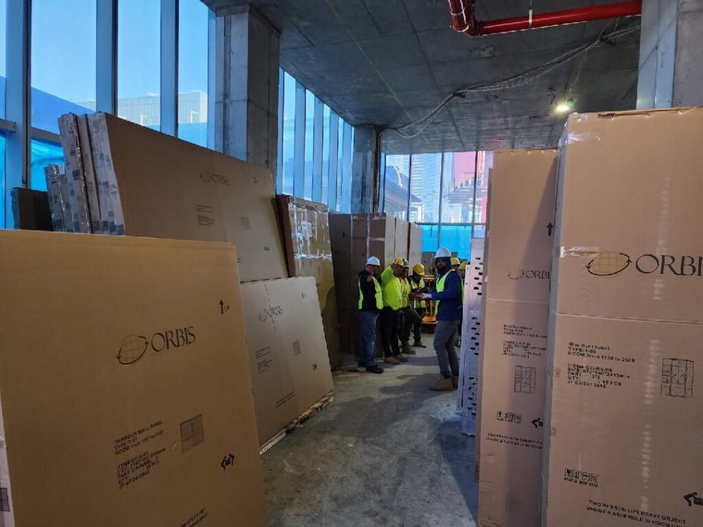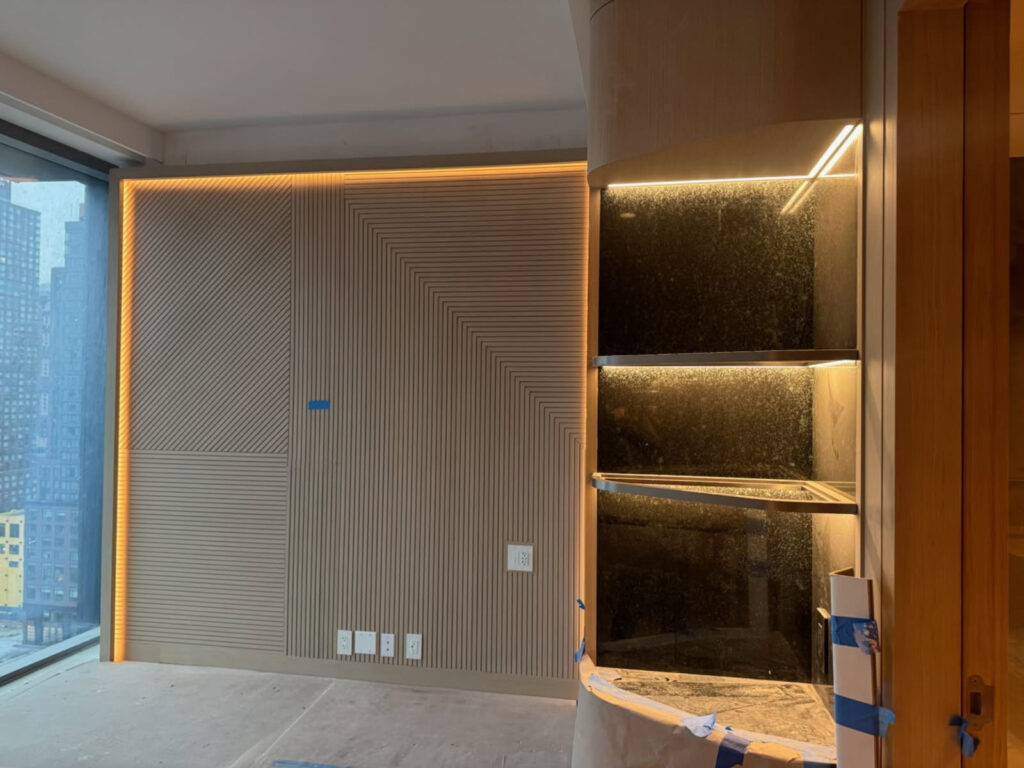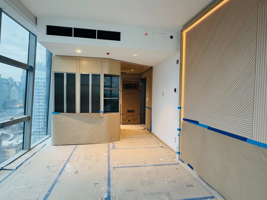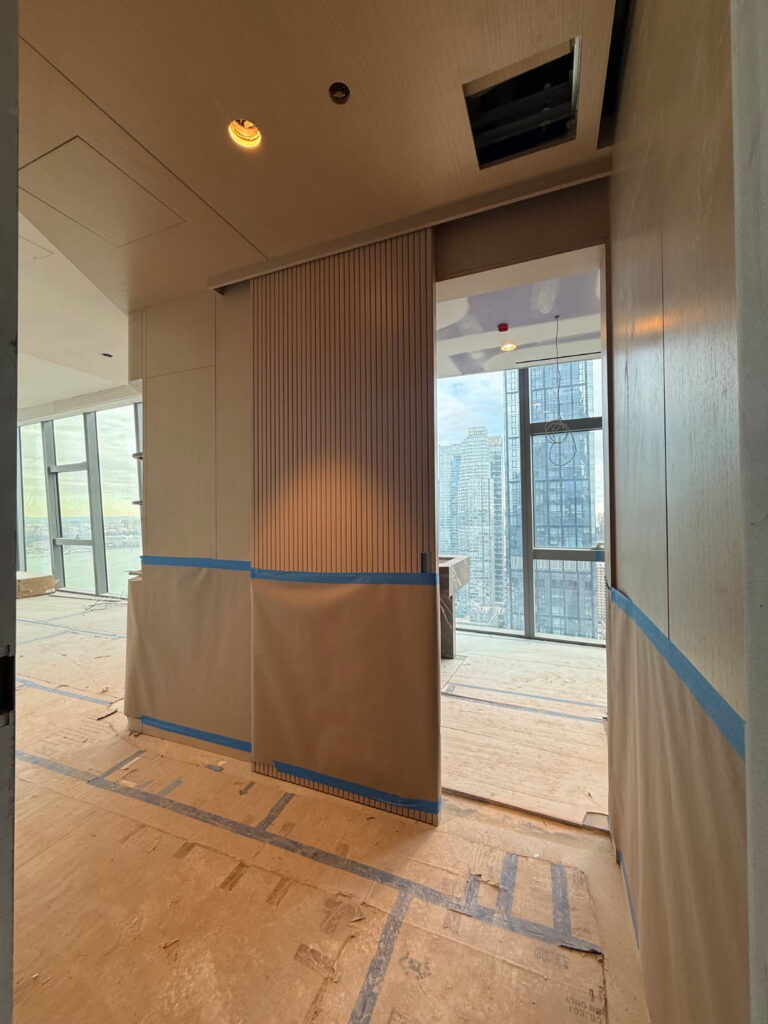 55 Story, spectacular new Marriott Hotel adjacent to the Javits Convention Center at Hudson Yards. OIS is delivering (72) ocean containers of product to the building. In conjunction with ALBCO Tech and our installation partner, Marvel Contracting, we are currently performing 50 Floors of Guestroom Interiors, the Presidential Suites and all Corridors & Elevator Lobbies. Scope consists of Designing, Manufacturing & Installing all Woodwork, Architectural Metal & Glass work, Custom Closets, Mini-Bars, Shelving, Vanities, Headboards, Desk Walls, TV Walls, Wood Paneling, Wood Ceiling Panels, Leather Panels, and Trim. Integral LED lighting systems encased within our assemblies. Includes manufacturing & Installing Custom SS Light Troughs in the ceilings, and Amenities Woodwork / Architectural Metal & Glass work. OIS also manufactured the 2-story SS Column Covers of the 4th floor exterior setback. All Manufacturing & Logistics are being performed in our Shanghai facilities, stored in our NJ Warehousing facility at Port Elizabeth. Reference: Mr. Ed Grunwald, Developer (718) 380-8882 Mr. Fitim Lajqi, Construction Manager (718) 860-4731